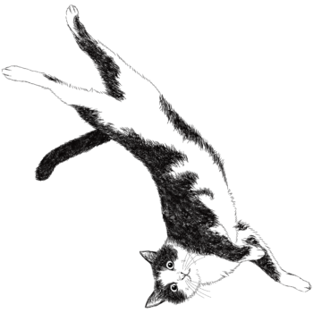 キーワード:猫,体,ハチワレ,モノクロ,ペン画