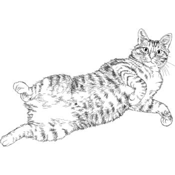 キーワード:猫,体,茶トラ猫,シンプル,モノクロ,ペン画
