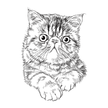 キーワード:猫,体,エキゾチックショートヘア,シンプル,モノクロ,ペン画
